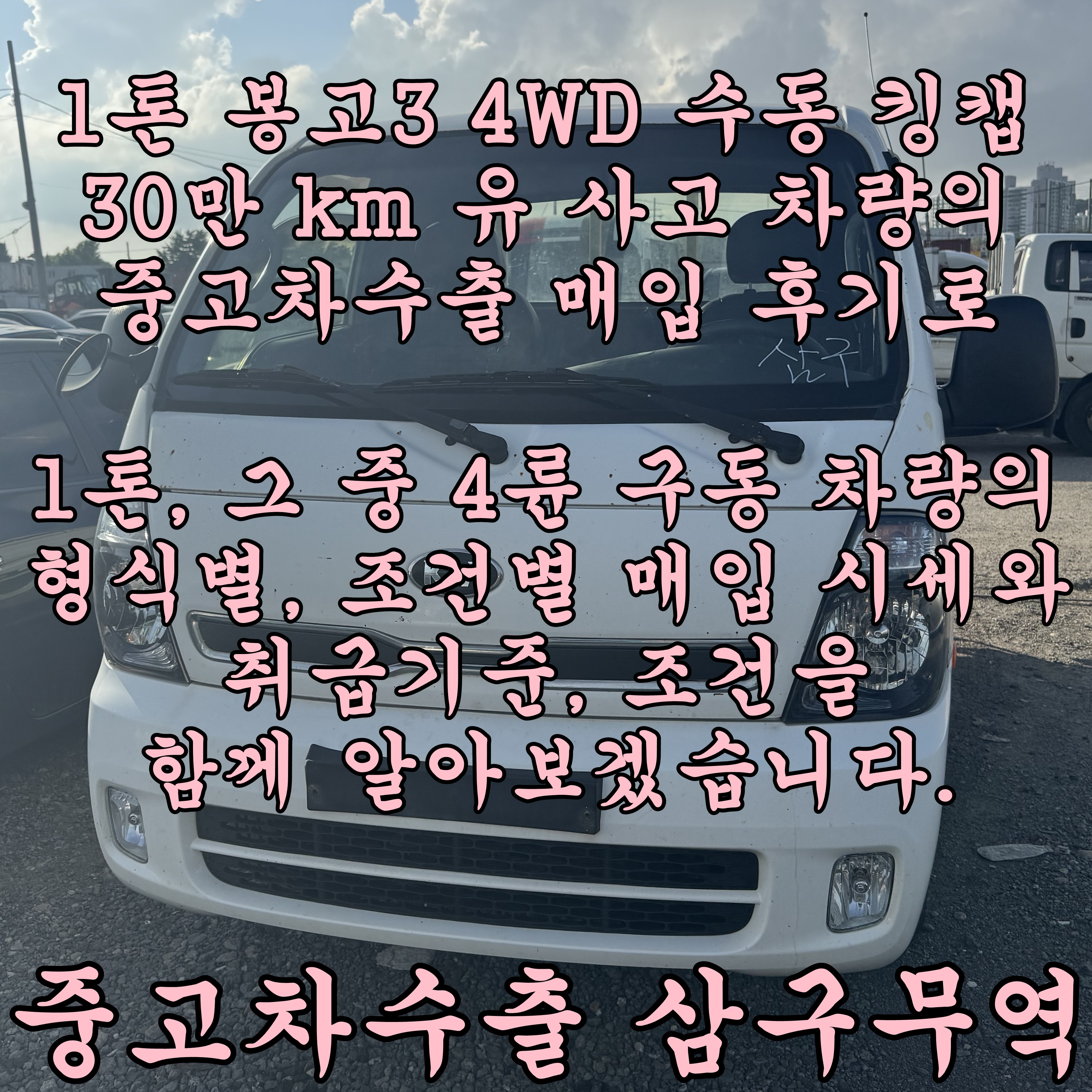 1톤 4륜 구동의 중고차수출 1톤 소형 화물의 직수출 전문 업체 삼구무역과 함께라면 어렵지 않습니다. 1톤,...