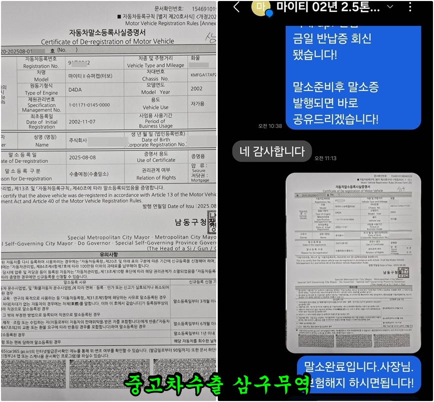 전국 출장 매입 / 신속 말소 / 직접 수출