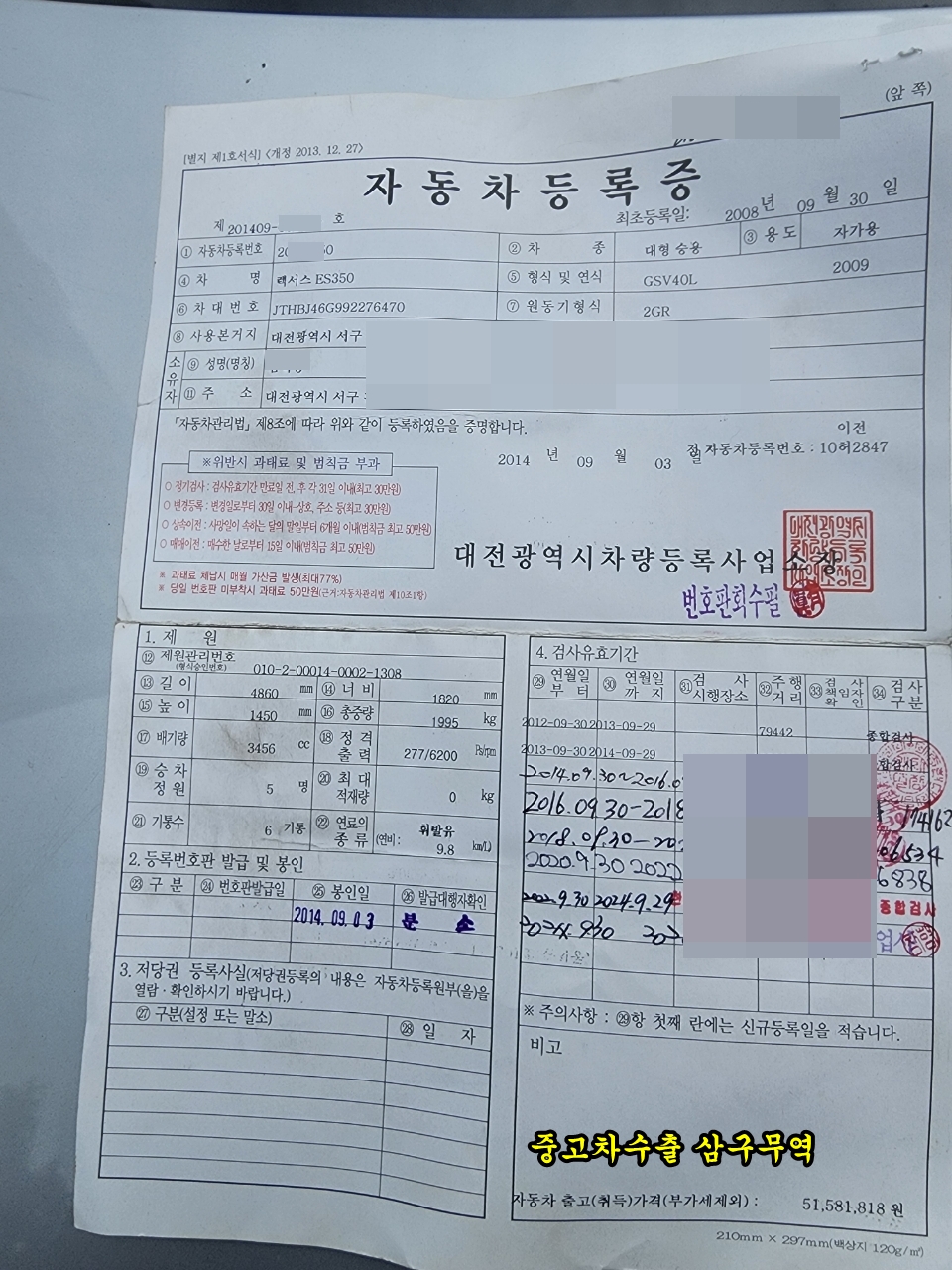렉서스 ES350 중고차 매매, 단연 수출이 최적