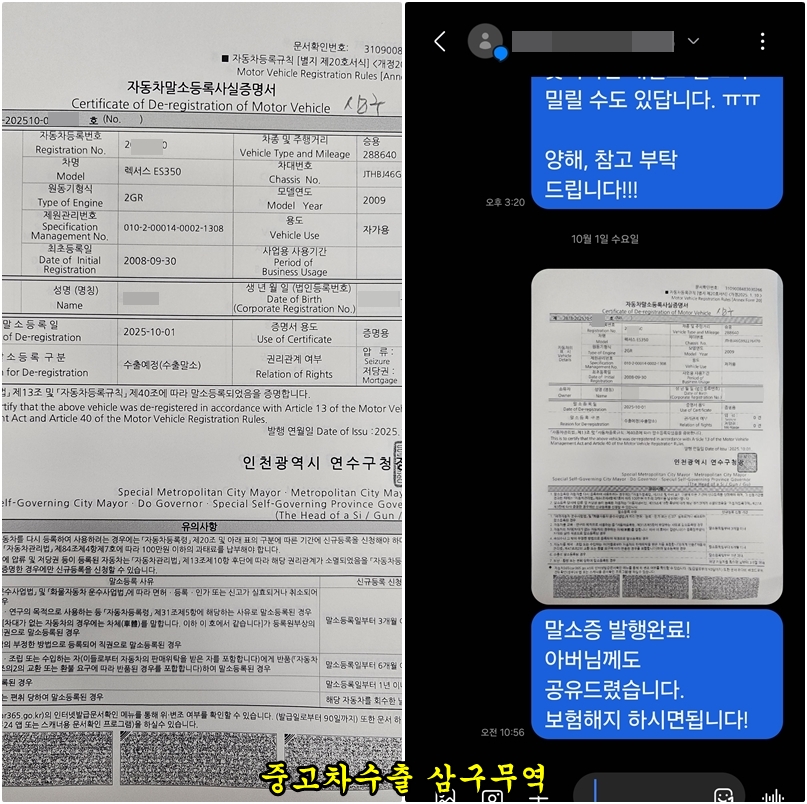 차량 인계 전 완불 지급 / 수출신고 대행 / 서류 처리 간편