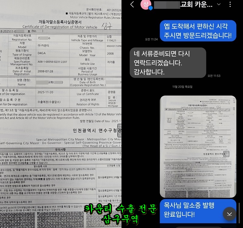 삼구무역은 전국 출장 매입 및 당일 말소가 가능한 정식 수출업체입니다.